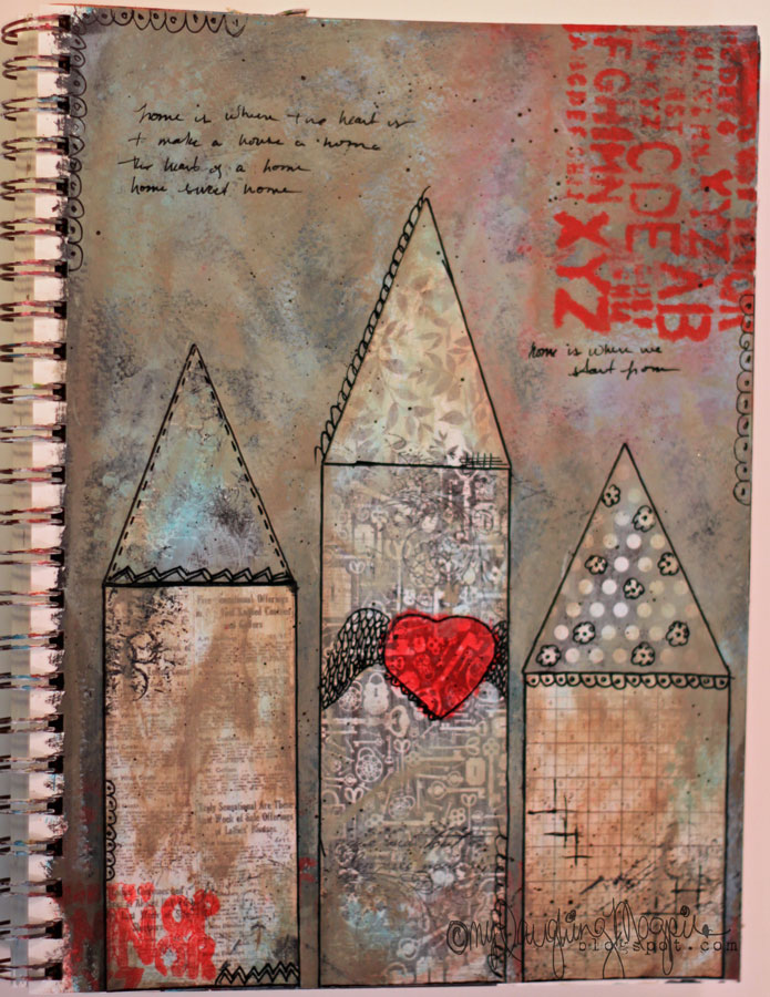 Finally, this "Home is where the heart is " page was created using lots of textures & layers for the background like I usually do, but the houses were made from various papers. 6x6 pads & scraps are perfect for these types of projects & playtime!
