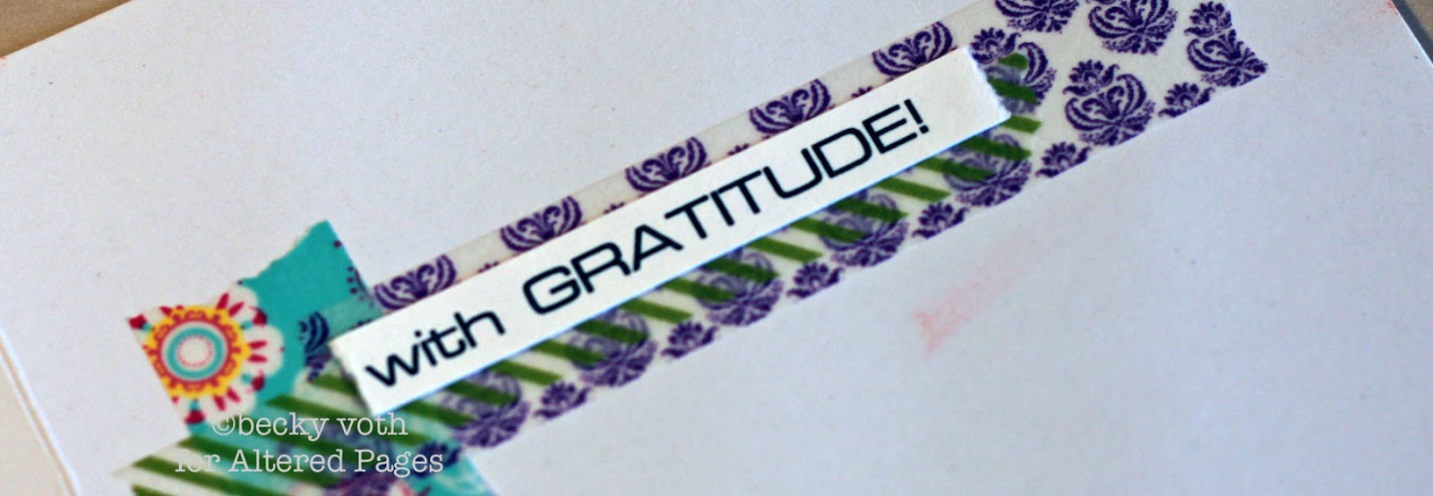 I printed "My cup runneth over..." on white card stock, tore the edges & then layered it over washi tapes on the front. Inside, I layered tape again & added the printed "with GRATITUDE!" on top.
